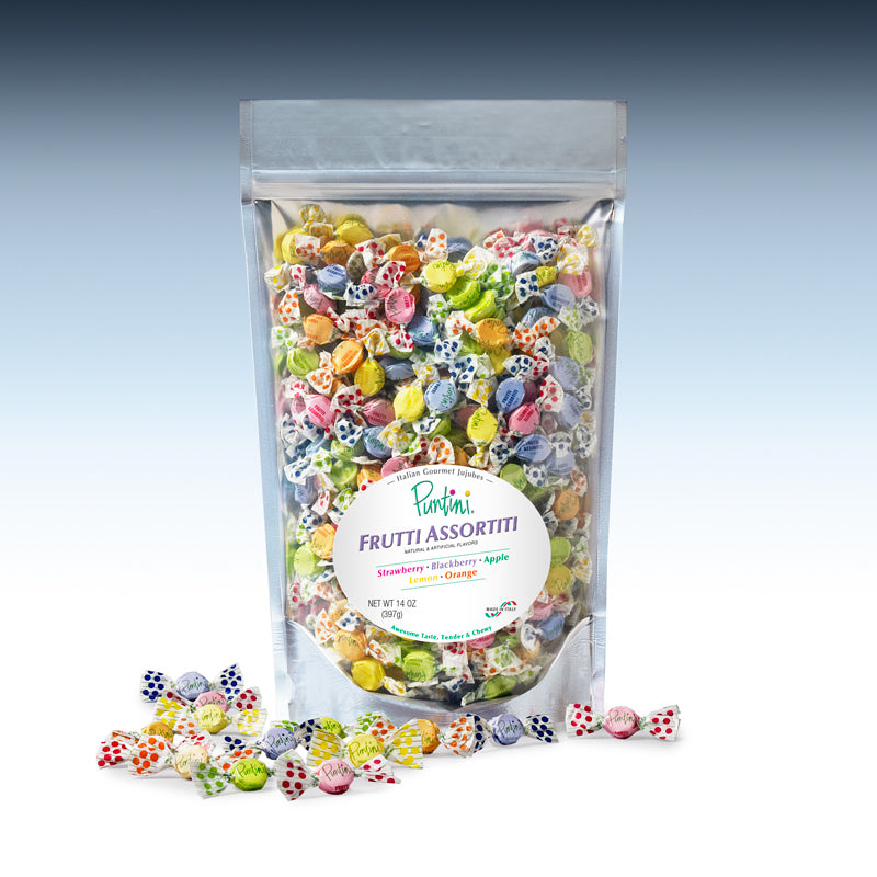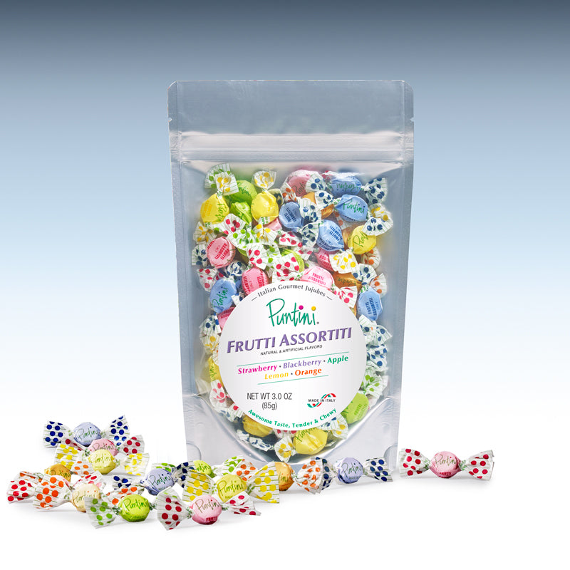These fruit-flavored gourmet jujubes from Italy are our longtime #1 PUNTINI favorite. Five uncommonly delicious flavors — luscious blackberry, strawberry, green apple, tangy orange, and lemon.