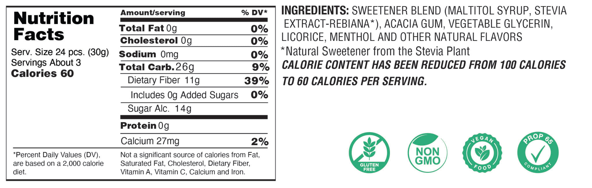 For nearly 75 years, CHIPS have been the go-to favorite of many professional speakers and singers. Inside each eye-catching wrapper, there’s an amazing little pastille whose lightly mentholated formula was perfected in Italy to gently soothe the throat, freshen the breath and please the palette. Sweetened with Stevia and made with Fiber Rich Acacia Gum for delightful chewiness, these All Natural CHIPS feature a strong, complex Licorice flavor. A real Italian classic — only true licorice aficionados need apply!