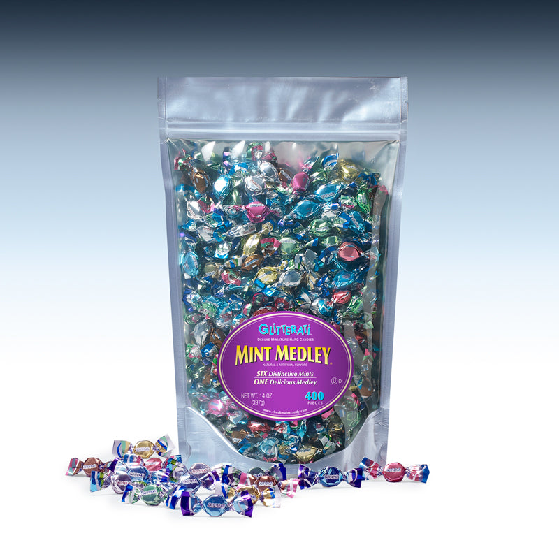 This eye-catching mixture of mint-flavored miniature hard candies is a “Must” for mint candy lovers. SIX matchless mints in ONE mighty medley. Mmm…Good!!